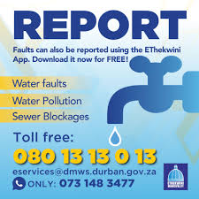 To log a water fault with eThekwini Municipality, you have several options: Please read or download our Guide Here.